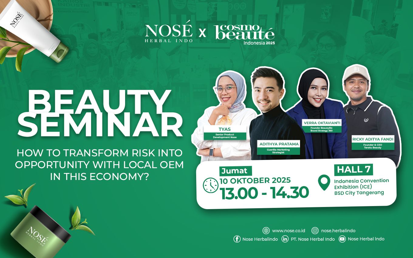 Nah, kalau kamu pengen gali lebih dalam tentang tren konsumen, strategi brand, sampai peluang baru di industri beauty, jangan lewatkan Nosé Beauty Seminar x Cosmobeauté 2025!